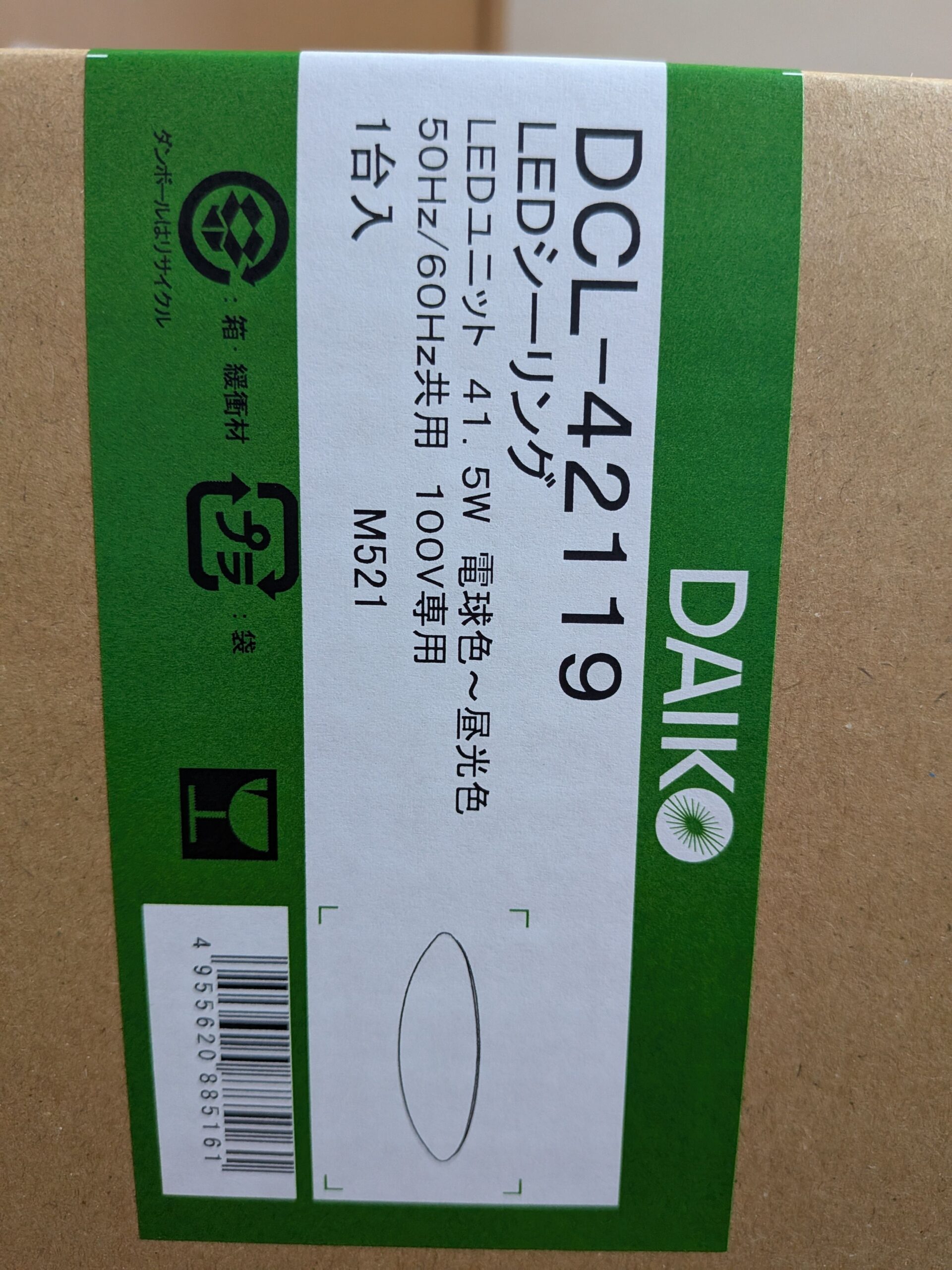 このアダプタに対応したLEDシーリングライトなら間違いないので同じ大光電機の製品から選択。選んだのは「大光電機 DCL-42119」です。取説も仕様図もあるので詳細も確認できます。